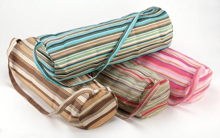 Looking for a mat bag that's strong, roomy , attractive and environmentally friendly? This handsome woven mat bag is made from unique, playfully colored strips of recycled paper. The bags tight weave makes it strong enough to carry even our heaviest mat. Its roomy compartment, featuring a full length zipper, is large enough to carry a mat, two blocks and a strap. Fully lined in cotton muslin, the bags paper fiber can be easily spot cleaned. Do not wash.